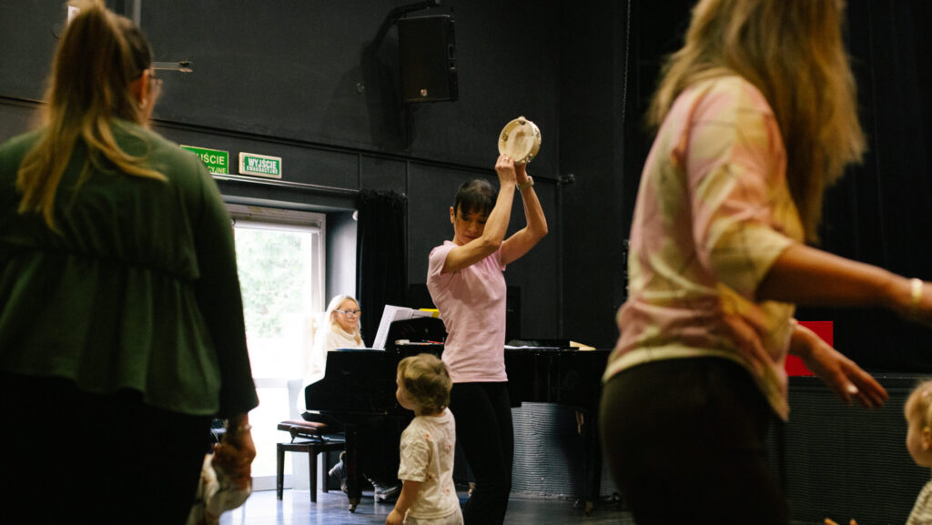 Podczas zajęć dzieci będą grały na podstawowych instrumentach oraz uczyły się prostych sekwencji ruchowych do muzyki granej na żywo.